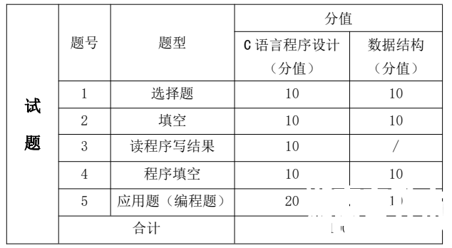 要求考生系统了解面向过程结构化程序设计基本结构,了解程序代码规范化基本要求,掌握 C 语言基本词法和语法,掌握“自顶向下,逐步求精”的结构化程序设计方法,掌握简单算法的设计与实现,掌握如何组织数据、如何存储数据和如何处理数据的基本方法,理解各种数据结构与算法。要求考生具有计算机简单操作能力,抽象思维能力,逻辑推理能力和运用所学知识分析和解决问题的综合能力。