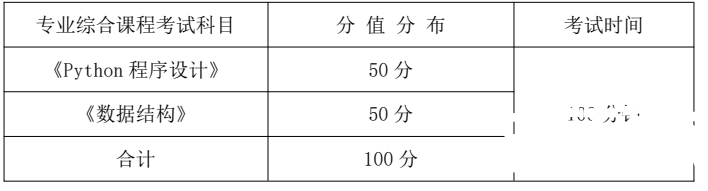 一、 专业综合课程考试科目、分值分布及考试时间本次专业综合考试科目、分值及考试时间见下表