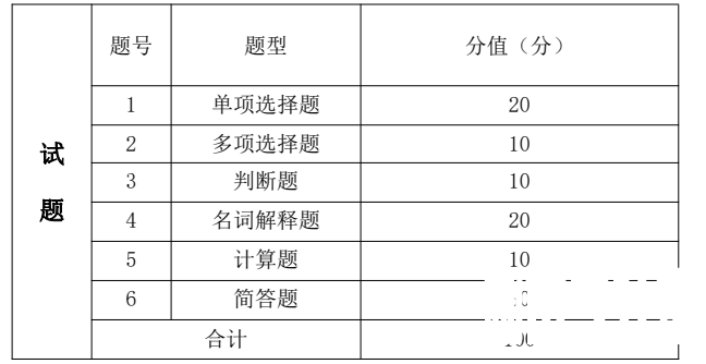 六、 考试题型、题量及分值分布