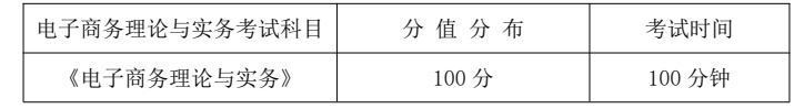 一、 电子商务理论与实务课程考试科目、分值分布及考试时间本次电子商务理论与实务考试科目、分值及考试时间见下表: