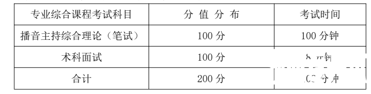 播音主持综合理论:闭卷、笔试。术科面试: 自备作品朗诵、指定新闻稿件播读、命题即兴评述。