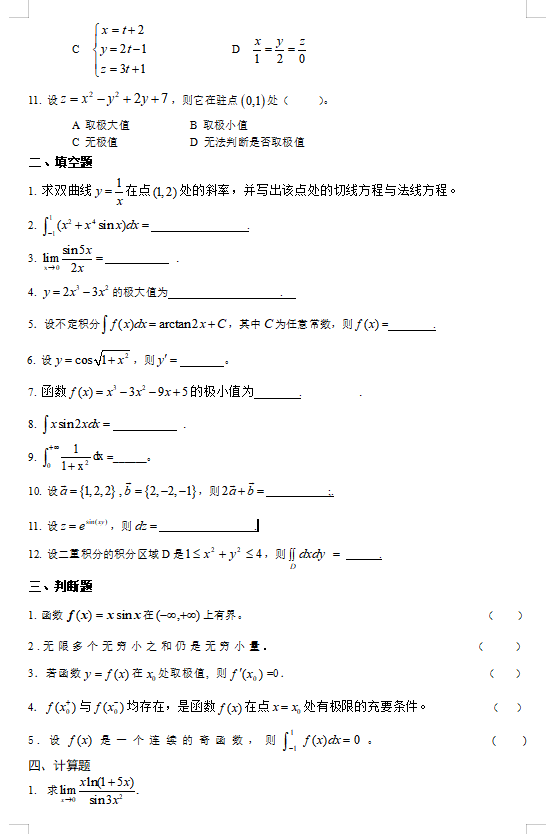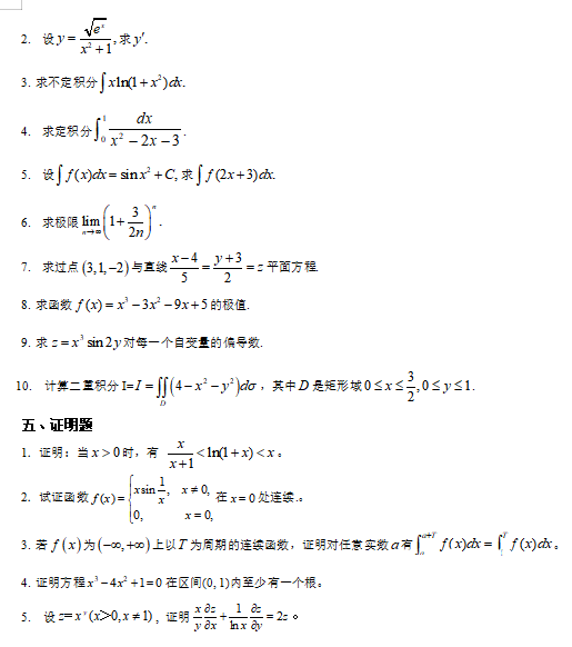 1. 考试题型结构:单项选择题,填空题,判断题,计算题,证明题。