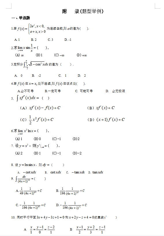 《高等数学》课程考试旨在考察学生对高等数学知识的掌握情况以及运用高等数学知识解决实际问题的能力.