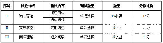 (2) 考试题型为单项选择题,每题有四个选择项,要求学生根据题中提供的语境从中选择一个最佳答案。