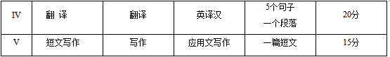考试形式为笔试、闭卷。本考试采用客观试题与主观试题相结合、单项技能测试与综合技能测试相结合的形式,考查考生的语法、阅读、翻译和写作等语言知识和应用技能。