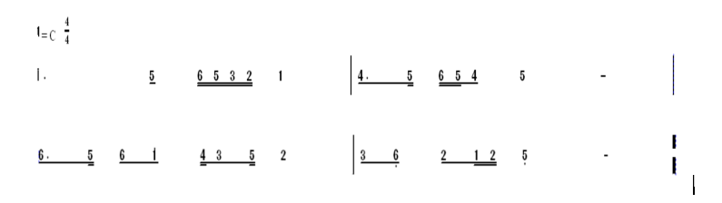 三、考试内容抽选两首视唱曲目。曲目包括简谱视唱和五线谱视唱两种类型曲目,其中五线谱视唱为无调号的高音谱表视唱。