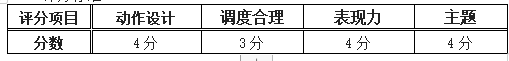 考试方法:考生自选音乐单独上场进行3分钟内自选技巧组合表演。