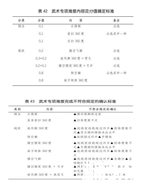 考生必须根据规定选做难度,确认难度完成程度参照《武术