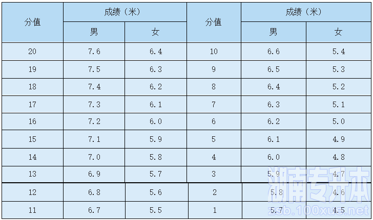 1. 考试方法:考生原地双脚站立在起跳线后,起跳时不能触及或超越起跳线。第一跳双脚原地起跳,可以用任何一只脚落地;第二跳跨步跳,用着地脚起跳以另一只脚落地;第三跳双脚落地完成跳跃动作后,起身向前走出测试区。成绩测量时,从身体落地痕迹的最近点取直线量至起跳线内沿。考生可穿钉鞋,其他未尽事宜参照田径竞赛规则执行。每人测试2次,取最好成绩。