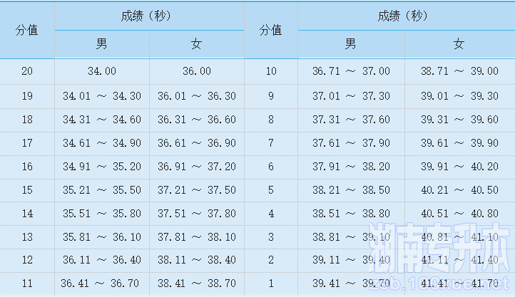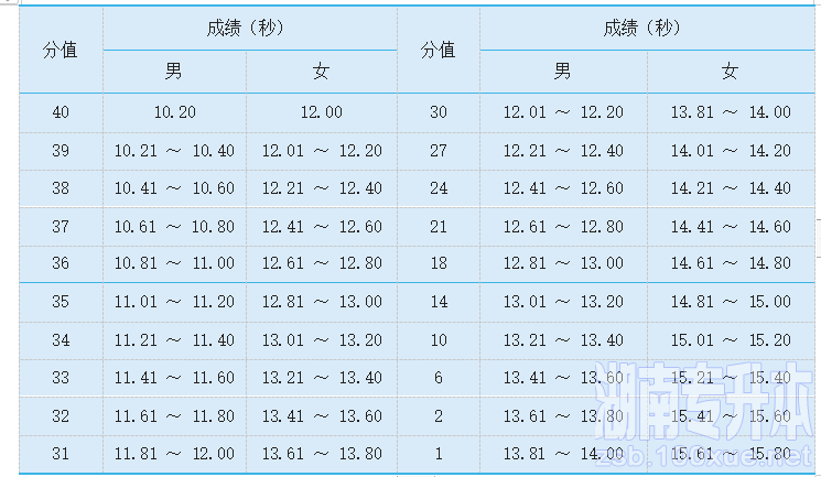1. 考试方法:考生从起跑线向场内垂直方向快跑,在跑动中依次用手击倒位于 5 米、10 米、15 米、20 米和 25 米各处的标志物后返回起跑线,要求每击倒一个标志物须立即返回一次,再跑到下一个标志物,以此类推。考生应以站立式起跑,脚动开表,完成所有折返距离回到起跑线时停表,记录完成的时间。未击倒标志物,成绩无效。每人测试 1 次。