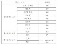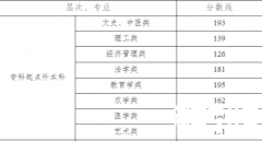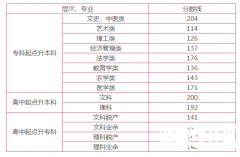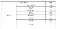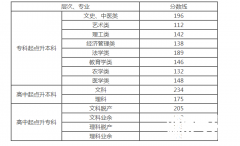 说明: 1.高中起点升本科、高中起点升专科体育专业最低控制分数线不得低于相应招生类型和考试科类最低控制分数线的70%;高中起点升本科、高中起点升专科艺术类专业(除史论、编导专...